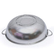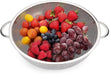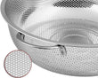 This item is a stainless steel kitchen colander strainer featuring small perforated holes for fast drainage.